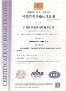 環(huán)境管理體系認證證書