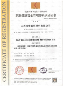 職業(yè)健康******管理體系認證證書